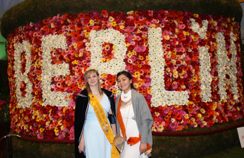 Die frisch gekröne Weinprinzessin Nadine I. war ein gefragtes Fotomotiv auf der Grünen Woche in Berlin. Zahlreiche Bilder entstanden in der Mecklenburg - Vorpommernhalle, beim Treffen mit dem Bundeslandwirtschaftsminister Friedrich in der Bundeshalle wo auch die Arbeitsgemeinschaft Deutsche Königinnen ihren Stand hatte. Auch in der Blumenhalle und den zahlreichen Länderhallen war die Weinprinzessin mit ihrer Hofdame Claudia willkommen.
