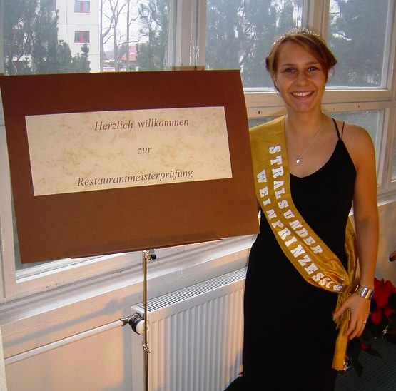Aber erst mal war alles toll, meine Eltern waren stolz und auch meine Ausbilder. Es war nicht leicht, denn es gab auch neidische Töne und einiges tat weh – dies half aber auf dem Teppich zu bleiben. Unterstützung ist das Wichtigste was eine Stralsunder Weinprinzessin braucht. Und die hatte ich – durch meine Eltern, meinen Freund, durch Kollegen und Ausbilder. Auch durch meinen Chef, Herrn Brands, der aber auch sehr nervig sein kann.