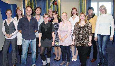Die anderen BewerberInnen und die Männer von der Castingtruppe hatten Spaß an den Auftritten der jungen Auszubildenden. Inzwischen routiniert im Umgang mit Kamaras und Mikros machte Kristina Mut für die Auftritte.