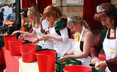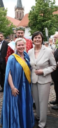 Die 7. + 8. Bollenkönigin von Calbe war in den letzten 2 Jahren immer ein willkommener Gast auf den Königinnentreffen. Eine Botschafterin der kleinen Stadt, wo die Zwiebel ganz hoch im Kurs steht. In Calbe, Nähe Magdeburg in Sachsen- Anhalt, wird die Zwiebel Bolle genannt und hier ist einer der größten Anbau- und Umschlagplätze für dieses nützliche Gemüse in Deutschland.