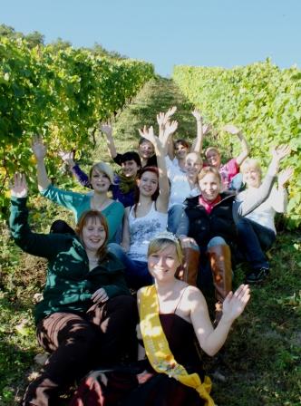 So hatte Kristina viel Zeit zum Fachsimpeln, und die Winzer Spaß,daran einigen Teilnehmerinnen zur Wahl 2010 den Wein direkt zu erklären.
