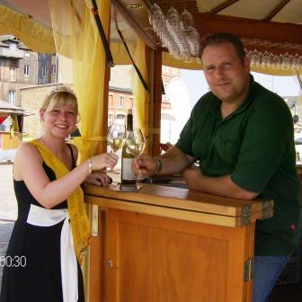 Die Sonne machte es den Winzern schwer den edlen Rebensaft an die wenigen, nicht zu Strand gefahrenen Besucher des ersten Stralsunder Weinfestes.