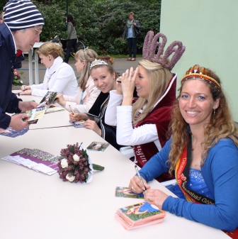 Nach einem guten Mittagessen wurde der Parkrundgang von der Königin perönlich moderiert und präsentierte sich wunderbar farbenfroh. Viele strahlende Gesichter entschädigten dann die vielen großen und kleinen Gäste des Parkfestes, für das nicht so optimale Wetter bei der königlichen Autogrammstunde.