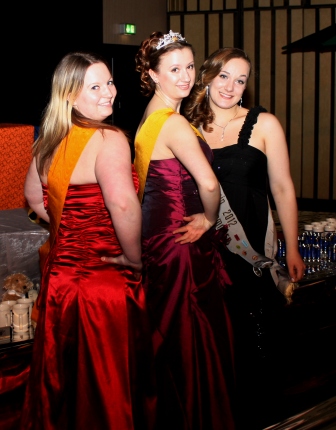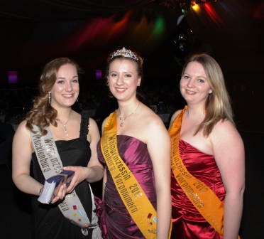 Anna I., Antke und Jana, die Repräsentantinnen des Wettbewerbes zur Weinprinzessin 2012, wurden u.a. auch unterstützt duch Catharina und Maike welche 2011 schon beim Ball dabei waren. Gäste begrüßen und placieren, Tombolalose verkaufen und Preise ziehen - es war ein gut gefülltes Programm für die Weinprinzessin.