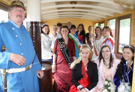 "Und der Weg, wird kein leichter sein..." und besonders nicht mit der deutschen Bahn. Oder, wenn Anna eine Reise tut - dann kann sie was erleben. Der Zug hat Verspätung - der Zug ist da - der Anschlusszug hat auch Verspätung - der Anschlusszug ist trotzdem weg.- So lernt man Land und Leute kennen. In Bielefeld war aber das Prinzessinenmobil endlich für unsere Hoheit bereit und der Spaß, auf Einladung der Rosenkönigin Anja Hobert aus Bad Langensalza, konnte beginnen.